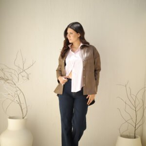 شيميز جلد مع قصّات أنثوية دقيقة لإطلالة جريئة وعصرية. شيميز جلد من FLORYA بتصميم جريء وعصري، مزود بقصّات أنثوية دقيقة تعمل على تحديد القوام وإبراز الأناقة. يعتبر هذا القميص الجلدي قطعة أساسية للإطلالات المسائية القوية أو للارتداء تحت المعاطف الشتوية، لإضافة لمسة مختلفة وفاخرة. تصميم مميز من فلوريا.