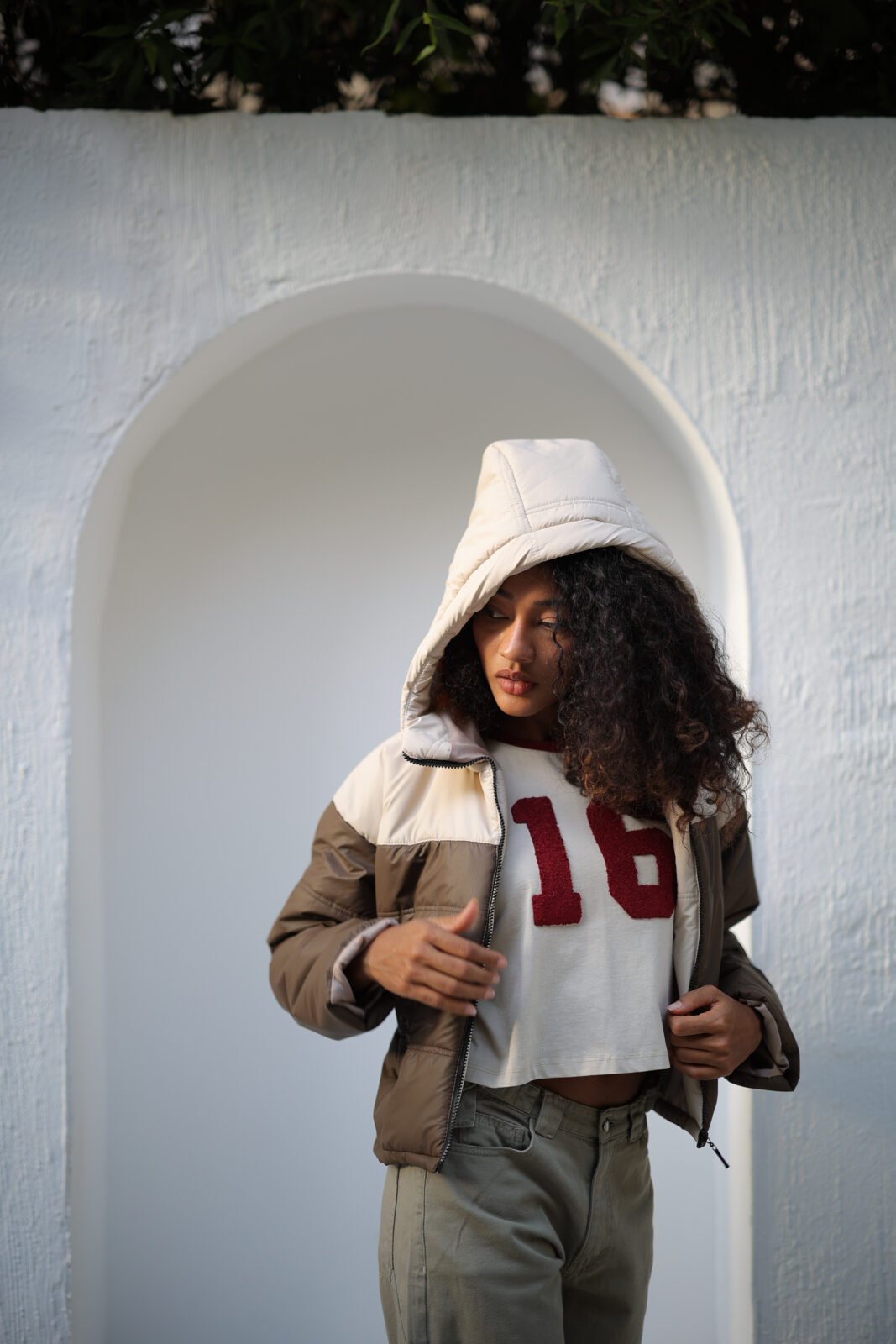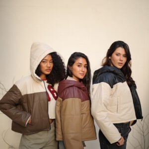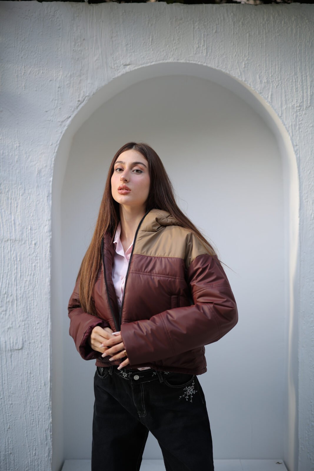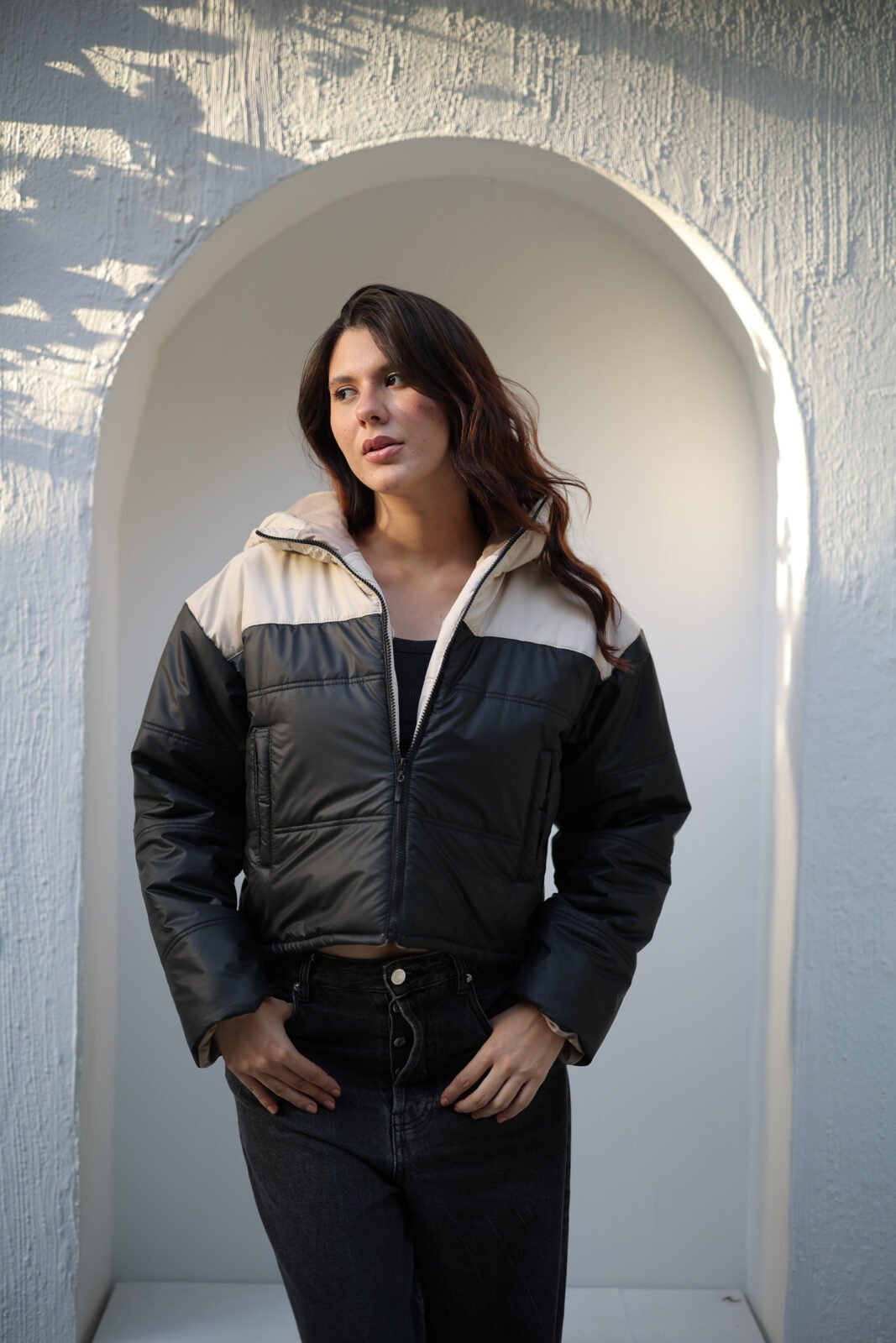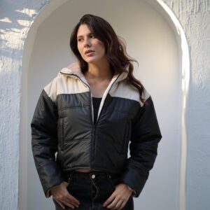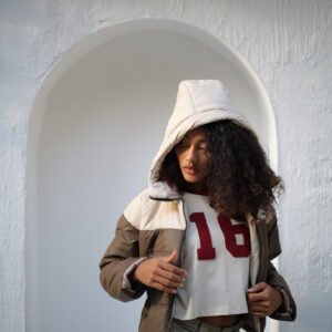 Pamela-style Jacket with Front Buttons — A practical and stylish jacket featuring a protective hood