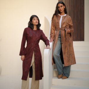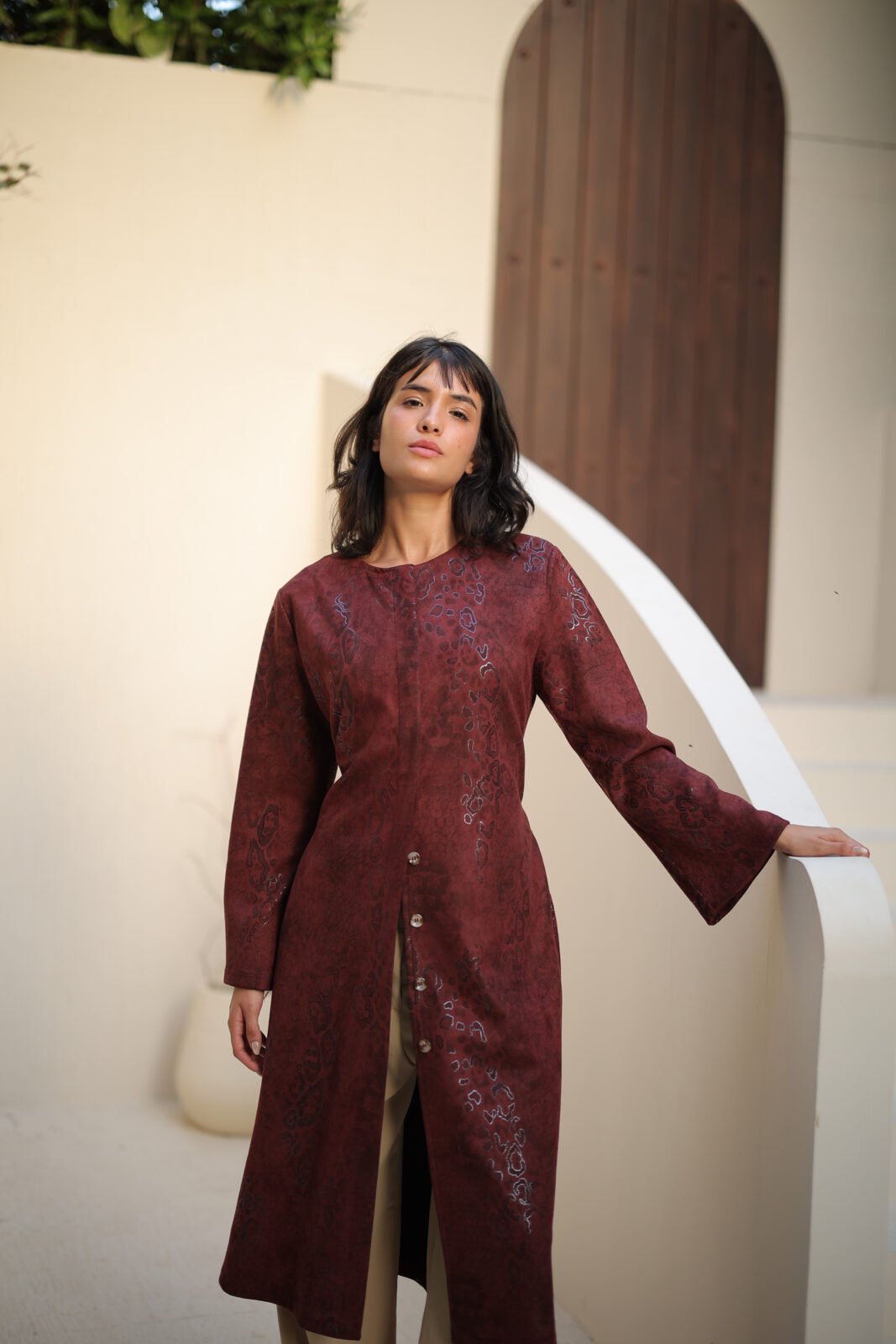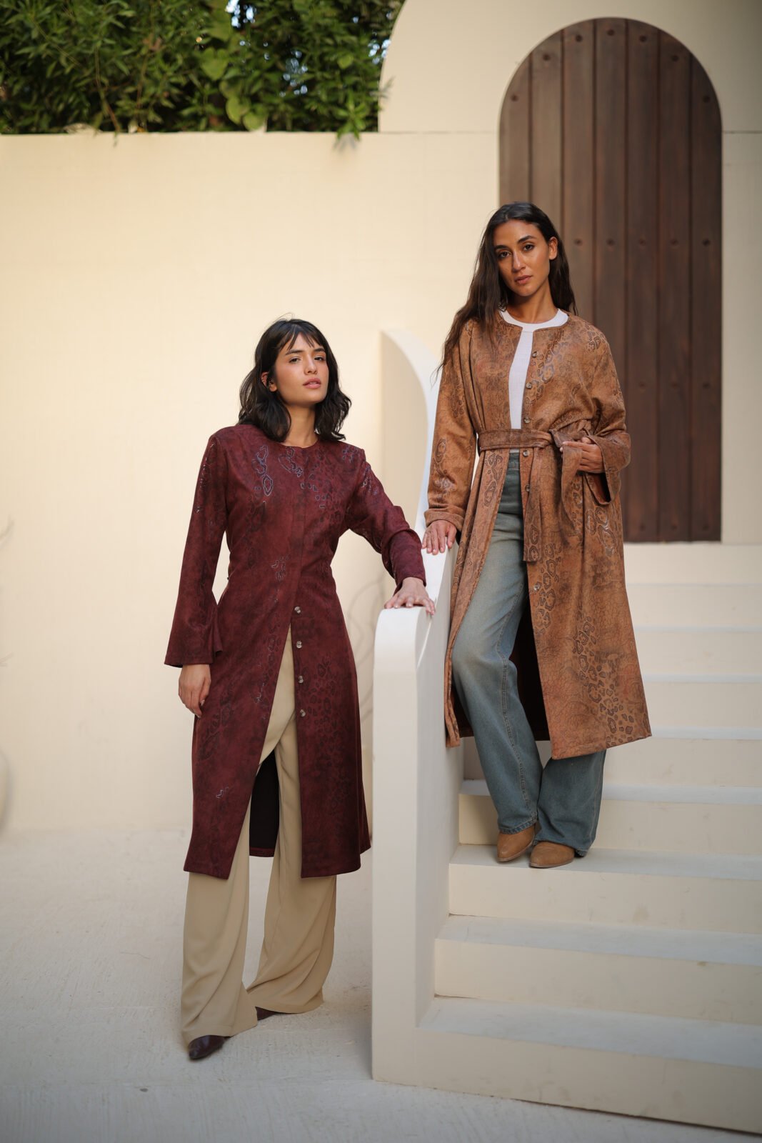 FLORYA Printed Suede Vest — A distinctive layering piece for winter, featuring elegant prints on soft