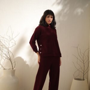 Tricot Suit with Side Buttons — A perfect daily essential that combines practical warmth with elegant