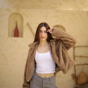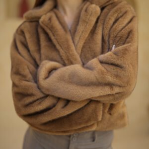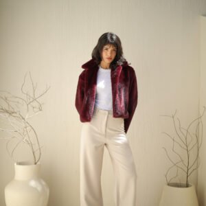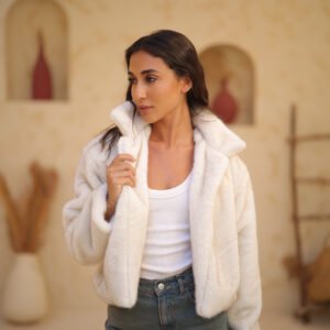 soft faux fur and a chic, modern aesthetic. It provides essential warmth with a sophisticated, youthful